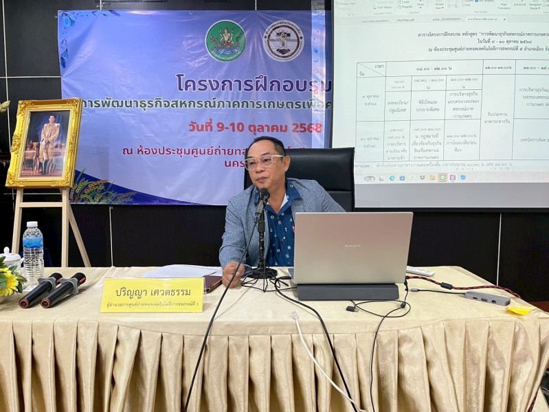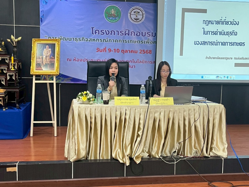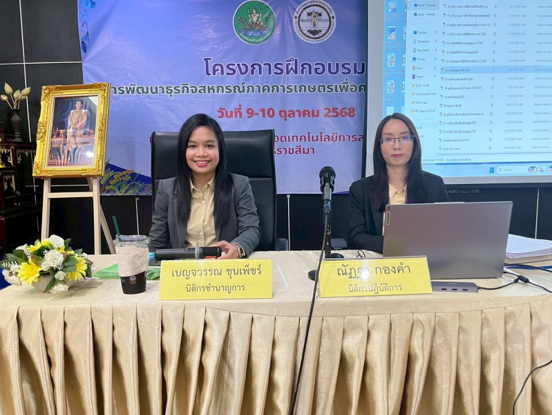 วันที่ 9 ตุลาคม 2568 นายปริญญา เศวตธรรม ผู้อำนวยการศูนย์ถ่ายทอดเทคโนโลยีการสหกรณ์ที่ 5 จังหวัดนครราชสีมา พร้อมคณะทำงานร่วมกับสันนิบาตรสหกรณ์จังหวัด นครราชสีมา ร่วมจัดโครงการฝึกอบรม หลักสูตร “การพัฒนาธุรกิจสหกรณ์การเกษตรเพื่อความยั่งยืน” รุ่นที่ 2 กำหนดโครงการฝึกอบรมจำนวน 2 วัน 9-10 ตุลาคม 2568 โดยมี นายปริญญา เศวตธรรม ผู้อำนวยการศูนย์ถ่ายทอดเทคโนโลยีการสหกรณ์ที่ 5 จังหวัดนครราชสีมา มาเป็นประธานในพิธีเปิดโครงการ