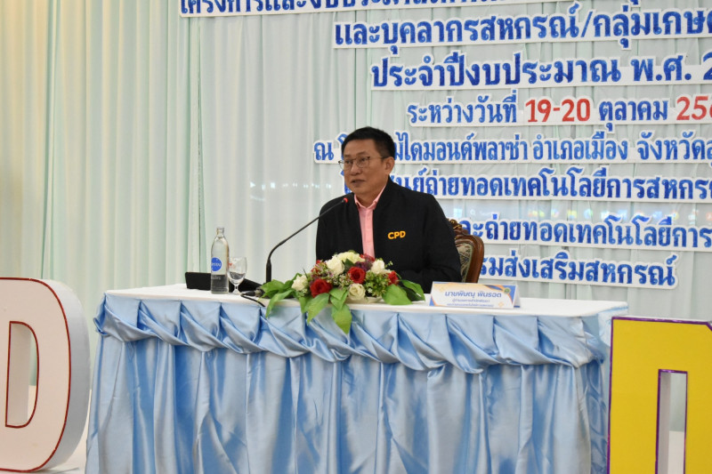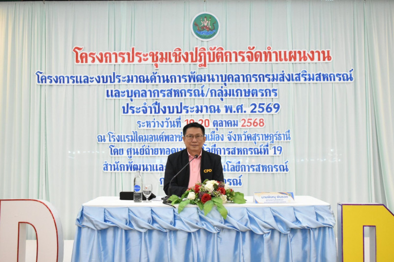 19 ตุลาคม 2568 นายปริญญา เศวตธรรม ผู้อำนวยการศูนย์ถ่ายทอดเทคโนโลยีการสหกรณ์ที่ 5 จังหวัดนครราชสีมา เข้าร่วมโครงการประชุมเชิง “การจัดทำแผนงานโครงการและงบประมาณด้านการพัฒนาบุคลากรกรมส่งเสริมสหกรณ์และบุคลากรสหกรณ์/กลุ่มเกษตรกร ประจำปีงบประมาณ พ.ศ. 2569” โดยมี นายพิษณุ พินรอด ผู้อำนวยการสำนักพัฒนาและถ่ายทอดเทคโนโลยีการสหกรณ์ เป็นประธานในพิธี วัตถุประสงค์เพื่อให้คณะผู้บริหารและเจ้าหน้าที่ของศูนย์ถ่ายทอดเทคโนโลยีการสหกรณ์ทั้ง 20 ศูนย์ ได้รับทราบแนวทาง หลักเกณฑ์การประเมินผลการปฏิบัติงานด้านการฝึกอบรมเพื่อพัฒนาบุคลากรของกรมส่งเสริมสหกรณ์และบุคลากรของสหกรณ์ และร่วมกันหารือถึงปัญหาอุปสรรคและแลกเปลี่ยนความคิดเห็นในการปรับปรุงและพัฒนาแนวทางในการทำงานร่วมกันเพื่อให้เกิดประสิทธิภาพมากยิ่งขึ้น การประชุมดังกล่าวจัดขึ้นระหว่างวันที่ 19-20 ตุลาคม 2568 ณ โรงแรมไดมอนด์ พลาซ่า อำเภอเมืองจังหวัดสุราษฎร์ธานี