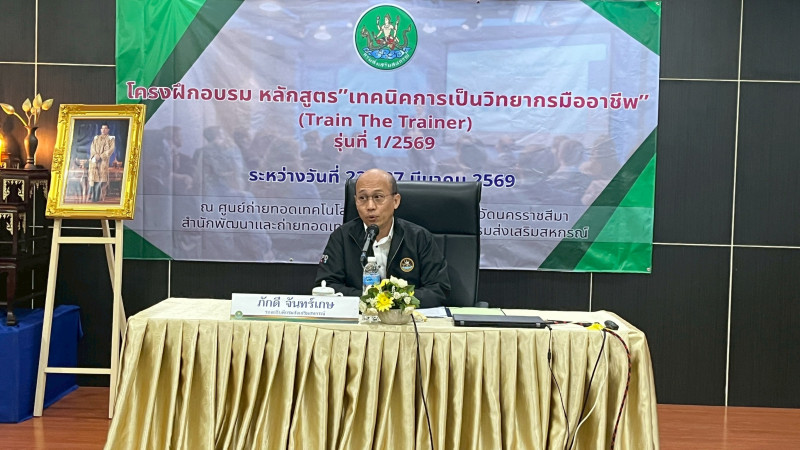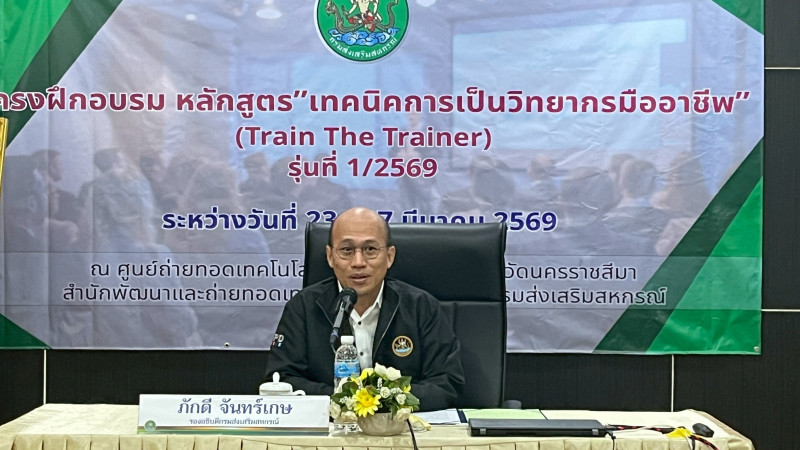 สำนักพัฒนาและถ่ายทอดเทคโนโลยีการสหกรณ์ ร่วมกับศูนย์ถ่ายทอดเทคโนโลยีการสหกรณ์ที่ 5 จังหวัดนครราชสีมา จัดโครงการฝึกอบรมหลักสูตร “เทคนิคการเป็นวิทยากรมืออาชีพ (Train The Trainer)” รุ่นที่ 1/2569 ระหว่างวันที่ 23 – 27 มีนาคม 2569 ณ ศูนย์ถ่ายทอดเทคโนโลยีการสหกรณ์ที่ 5 อำเภอเมืองนครราชสีมา จังหวัดนครราชสีมา โดยได้รับเกียรติจาก นายภักดี จันทร์เกษ รองอธิบดีกรมส่งเสริมสหกรณ์ เป็นประธานในพิธีเปิดโครงการ