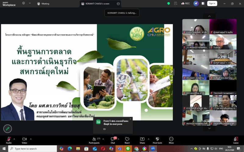 วันที่ 26-27 มีนาคม 2569 ศูนย์ถ่ายทอดเทคโนโลยีการสหกรณ์ที่ 5 จังหวัดนครราชสีมา เข้าร่วมโครงการฝึกอบรม หลักสูตร “พัฒนาศักยภาพบุคลากรด้านการตลาดและการบริหารธุรกิจสหกรณ์” ระหว่างวันที่ 26 – 27 มีนาคม 2569 โดยมีนายอนุรัตน์ เลื่อนลอย ผู้อำนวยการสำนักพัฒนาและถ่ายทอดเทคโนโลยีการสหกรณ์ เป็นประธานเปิด วัตถุประสงค์เพื่อพัฒนาความรู้ ความเข้าใจเกี่ยวกับหลักการ แนวคิด และกระบวนการตลาด เสริมสร้างทักษะการวิเคราะห์ตลาด การวางแผนตลาด ส่งเสริมและพัฒนาสินค้าและบริการรวมถึงสามารถประยุกต์ใช้เครื่องมือสื่อสารการตลาดทั้งรูปแบบออฟไลน์และดิจิทัลอย่างมีประสิทธิภาพ กลุ่มเป้าหมาย ผู้จัดการสหกรณ์ เจ้าหน้าที่หรือพนักงานที่รับผิดชอบงานด้านการตลาด ธุรกิจ การจำหน่ายสินค้าและบริการ ในพื้นที่รับผิดชอบของศูนย์ เข้าร่วมโครงการฝึกอบรมออนไลน์ ณ ศูนย์ถ่ายทอดเทคโนโลยีการสหกรณ์ที่ 5 จังหวัดนครราชสีมา